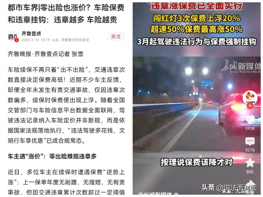 再从保险本身的道理讲,保费应该跟什么挂钩?跟出不出事、赔不赔钱挂钩。这是保险最基本的逻辑——你出险多、理赔多,保费高一点,大家都能接受。可你没出过险、没让保险公司赔过一分钱,就因为几个违章就涨保费,这等于让守法车主,为自己根本没造成的风险买单。还有一个很现实的问题:现在违章数据直接连到保险平台,一旦录错、判错、信息同步错了,车主想申诉、想改回来,非常麻烦。成本谁承担?还是老百姓自己承担?公权力的数据,用在商业收费上,边界在哪里?谁来监督?这些问题都没有说清楚。笔者绝对支持严管交通违法,支持用合理方式引导安全驾驶,但手段不能越界,更不能牺牲普通人的利益。公平正义不是写在纸上的口号,是你违了章该怎么罚就怎么罚,罚过了就不能再变相追责;是制度对所有人一视同仁,不搞“普通人多掏钱、有钱人无所谓”;是保险回归保障本质,不把行政处罚当成涨价的理由。
