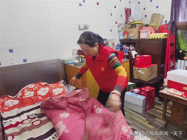 为老人打扫卫生叠被子